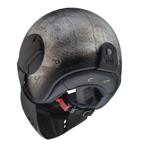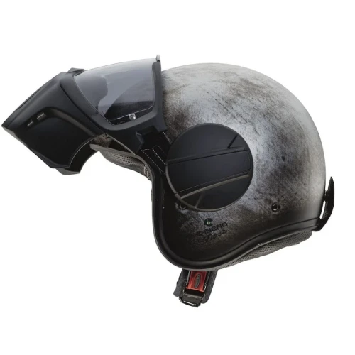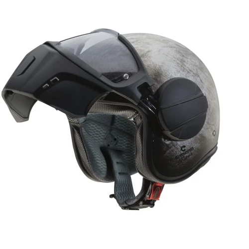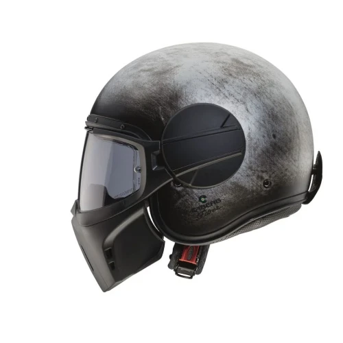 Caberg Ghost er en halvhjelm i fiber som har maske og "briller". Masken kan tas av "brillene" slik at hjelmen kan brukes kun med "briller". "Brillene" er duggfrie. Fronten (maske og brille) åpnes enkelt med 1 hånd. Når "brillen" er lukket hviler de mot kinnet på en skumgummi-pute. Puten kan demonteres eller erstattes av pute med annen tykkelse.