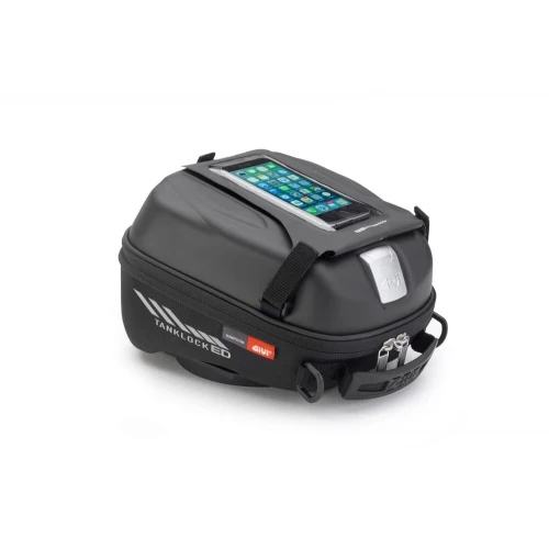 ST605 er en liten tankveske på 5 liter. Den monteres uten behov for stropper eller magneter. En liten ring som monteres på tanklokket sørger for enkel og sikker av og på montering.