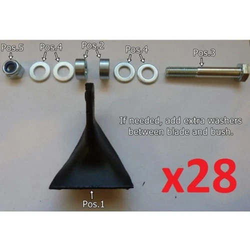 Settet inneholder bolter, hylser og T-blad til å bytte alle på en hel beitepusser. Totalt 28 par (56 blad).