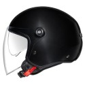 Lett og trendy halvhjelm. Hjelmen er kompakt i ytre mål slik at den enkelt kan plasseres i vesker eller under setet. Det lange visiret kan tas av slik at hjemen kan brukes kun med solvisiret.