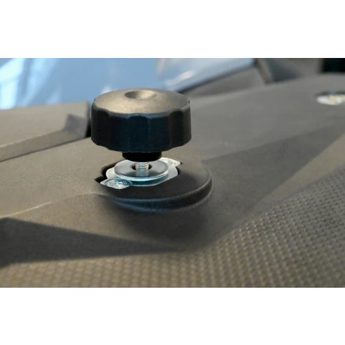Monteringsplaten er skreddersydd for å passe til alle CFMOTO-modeller utstyrt med plaststativ. Den skrus enkelt fast med to skruer i de eksisterende hullene på fremre eller bakre stativ på ATV-en. Ved festing ekspanderer det gummikledde stempelet, noe som betyr at monteringsplaten blir sittende godt fast uten fare for å skade lastestativet. Hurtigfestet skrus deretter ned i monteringsplaten for hånd og holder tilbehøret trygt på plass.