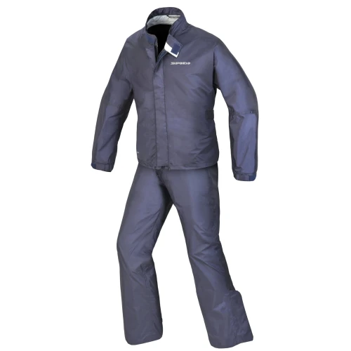 To-delt regndress i mørk blå farge.